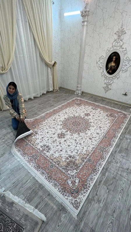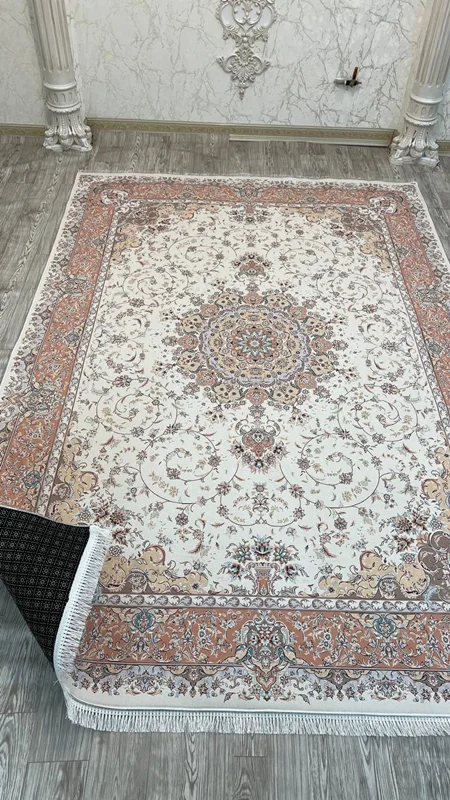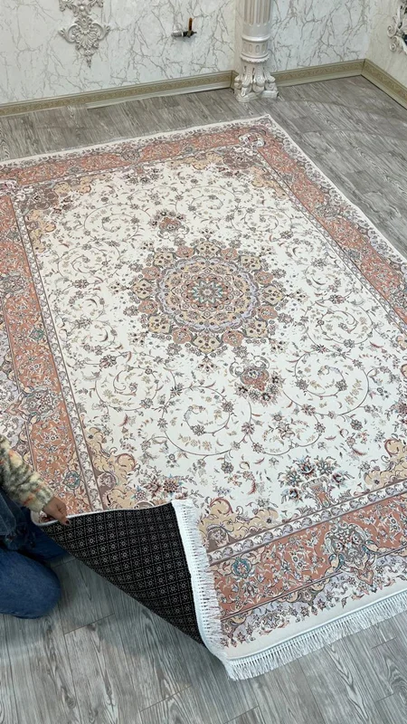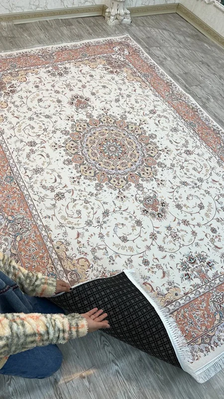 فرشینه پشت استپ دار (فرش لایت) کیفیت عالی طرح بسیار زیبا رنگ کرم کد fh0754 (با فیلم) / mat light carpet with stop-layer modern design all sizes