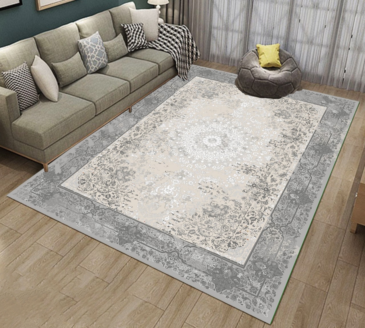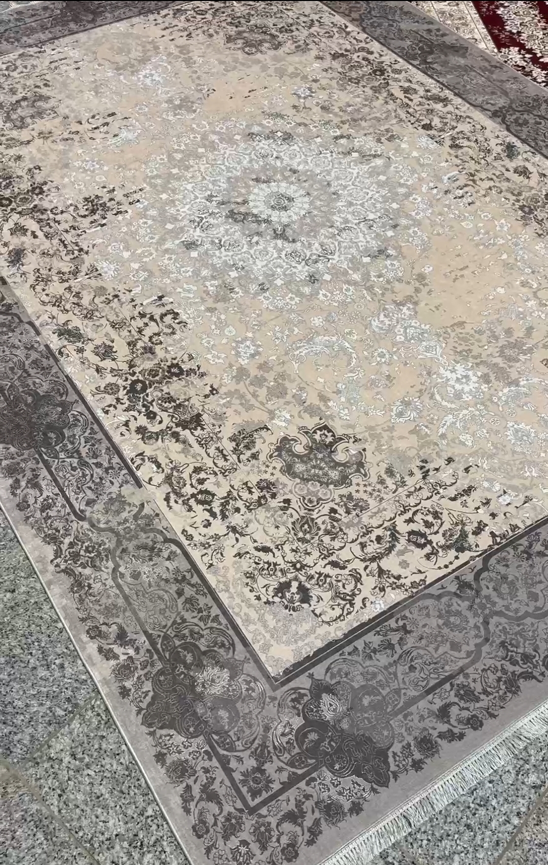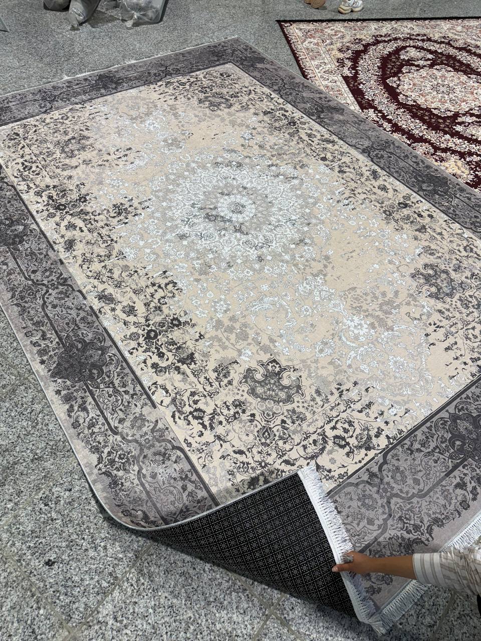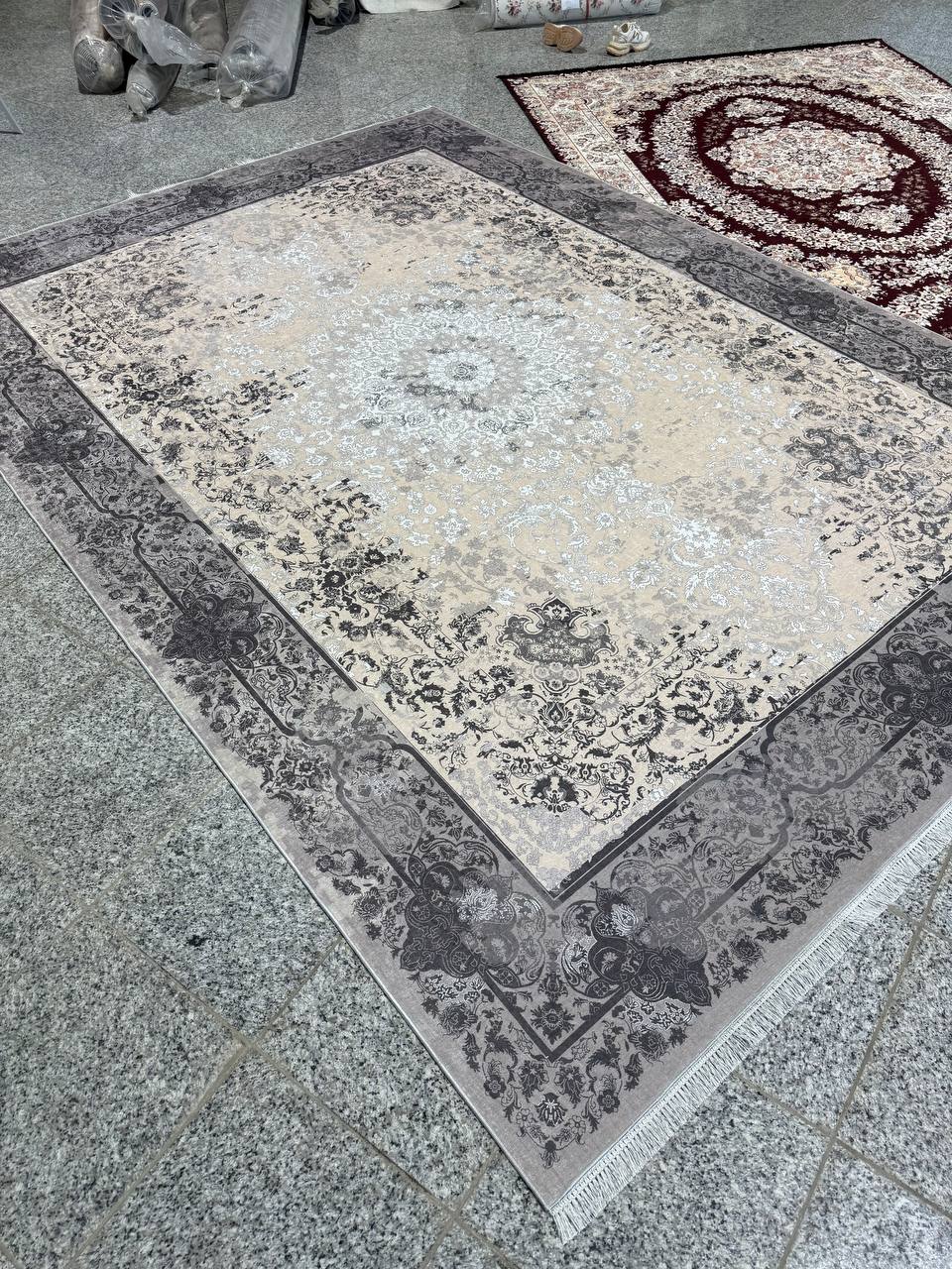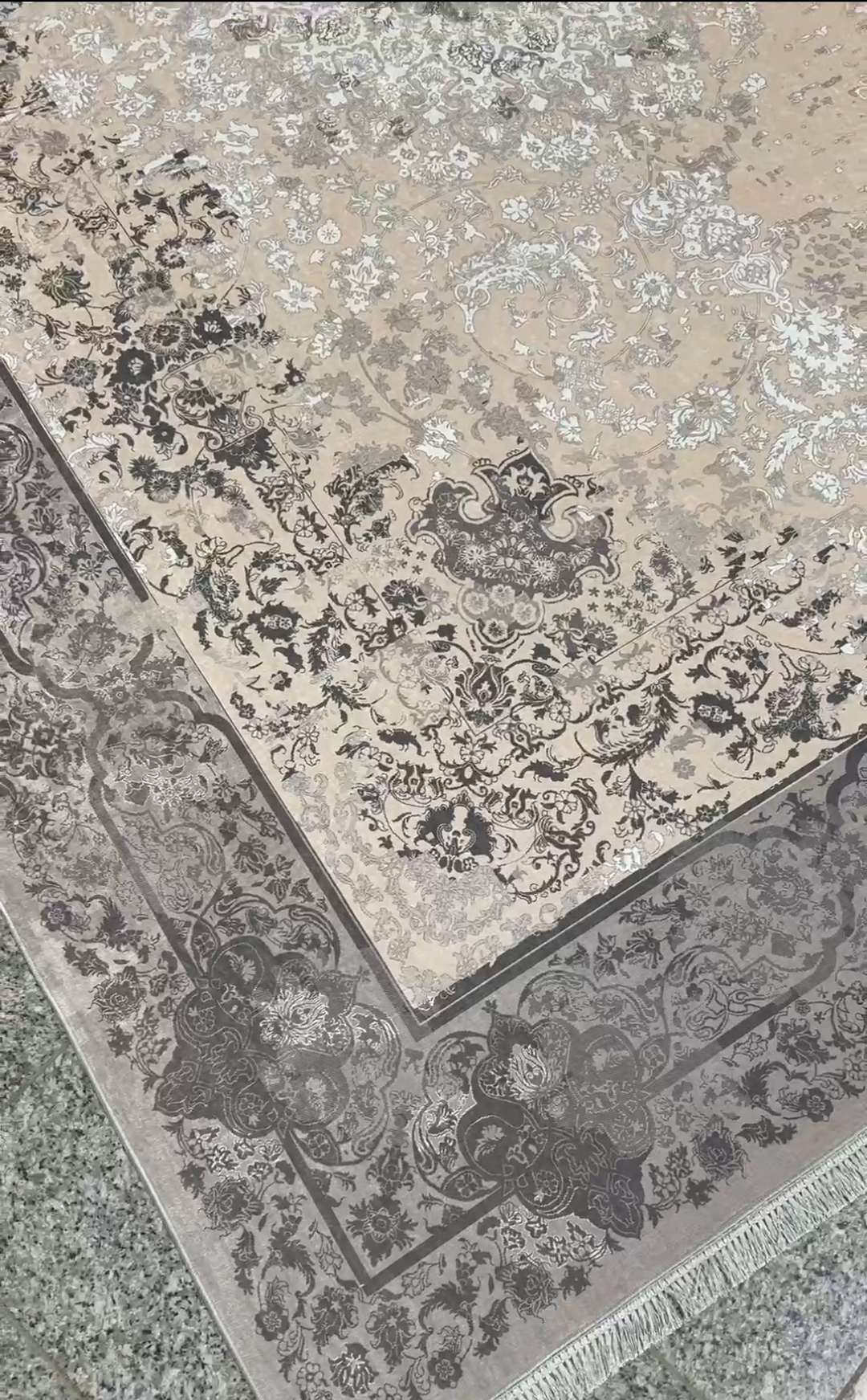 فرشینه استپ دار ۳ لایه ریشه دار (فرش لایت) کیفیت عالی طرح زیبا رنگ طوسی کد fh1820 (با فیلم)