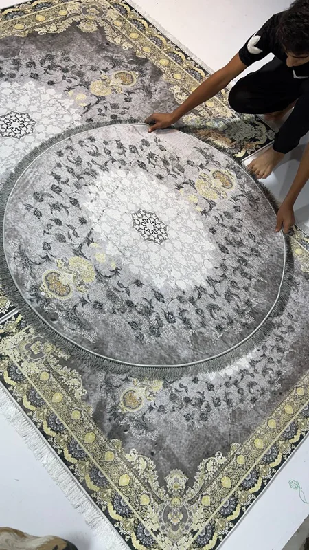 فرشینه استپ دار ۳ لایه ریشه دار (فرش لایت) کیفیت عالی طرح زیبا رنگ طوسی کد fh1820 (با فیلم)