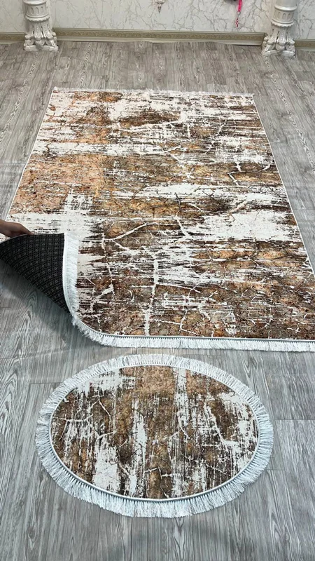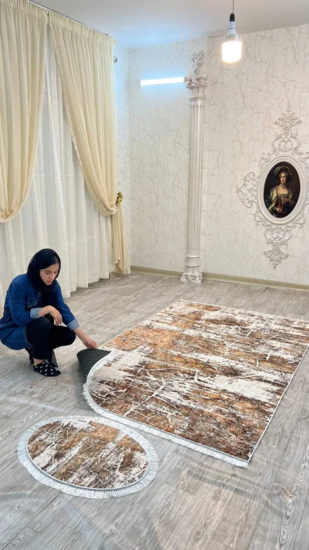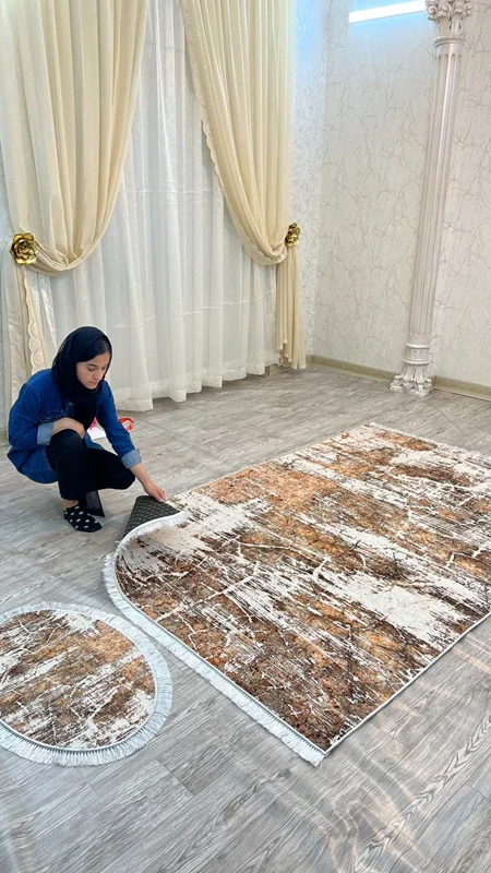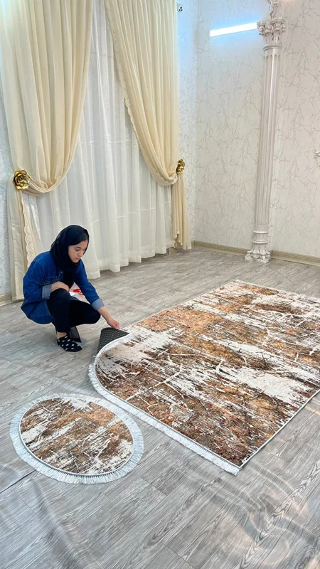 فرشینه استپ دار یک محصول جدیدی است که چند سالی است به عنوان جایگزین ارزان قیمت تر فرش تولید میشود. این محصول از یک لایه پارچه ای از جنس مخمل شانل تشکیل شده است که طرح روی این لایه چاپ می شود. لایه میانی یک لایه از نمد است و لایه زیرین یک لایه استپ دار است. به دلیل این لایه روی سرامیک حرکت خاصی نخواهد داشت. این محصول را راحت می توان به مانند فرش به قالی شویی داد. این محصول از ابعاد پادری تا ۱۲ متری تولید میشود. با توجه به سایزهای متنوع و تعداد طرح بسیار زیاد، این محصول با سفارش تولید میشود. هر سایزی که نیاز داشته باشید هم تولید میشود. حتی اگر ۱۵۴ در ۳۴۷ که دقیق هم نیست تولید میشود. برای این سایزهایی که در منوی سایزها موجود نیست، از چت سایت با ما در تماس باشید. قول ما برای زمان تولید و ارسال ۲۵ روز کاری است و هزینه ارسال طبق قانون کارگاه بر عهده مشتری است. لازم به ذکر است از هر طرح فرشینه، کاور فرش کشدار نیز قابل سفارش است و از هر طرح کاور فرش کشدار، فرشینه نیز قابل سفارش است.
