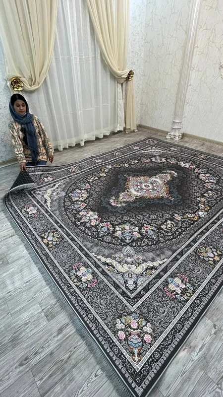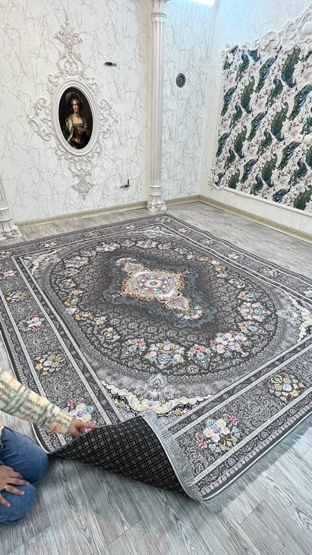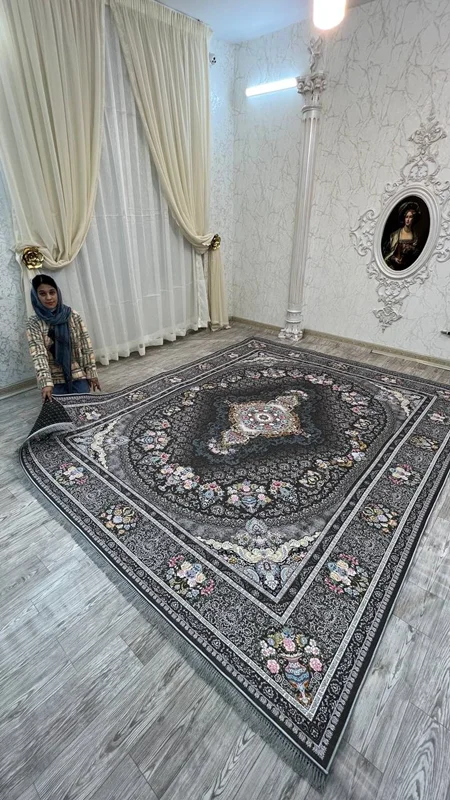 فرشینه استپ دار ۳ لایه ریشه دار (فرش لایت) کیفیت عالی طرح زیبا رنگ طوسی کد fh1820 (با فیلم)