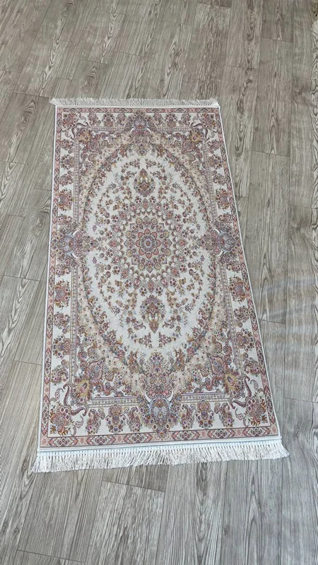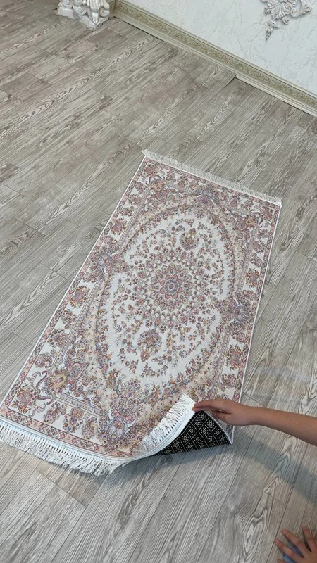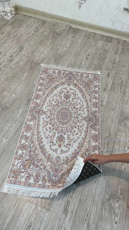 فرشینه استپ دار یک محصول جدیدی است که چند سالی است به عنوان جایگزین ارزان قیمت تر فرش تولید میشود. این محصول از یک لایه پارچه ای از جنس مخمل شانل تشکیل شده است که طرح روی این لایه چاپ می شود. لایه میانی یک لایه از نمد است و لایه زیرین یک لایه استپ دار است. به دلیل این لایه روی سرامیک حرکت خاصی نخواهد داشت. این محصول را راحت می توان به مانند فرش به قالی شویی داد. این محصول از ابعاد پادری تا ۱۲ متری تولید میشود. با توجه به سایزهای متنوع و تعداد طرح بسیار زیاد، این محصول با سفارش تولید میشود. هر سایزی که نیاز داشته باشید هم تولید میشود. حتی اگر ۱۵۴ در ۳۴۷ که دقیق هم نیست تولید میشود. برای این سایزهایی که در منوی سایزها موجود نیست، از چت سایت با ما در تماس باشید. قول ما برای زمان تولید و ارسال ۲۵ روز کاری است و هزینه ارسال طبق قانون کارگاه بر عهده مشتری است. لازم به ذکر است از هر طرح فرشینه، کاور فرش کشدار نیز قابل سفارش است و از هر طرح کاور فرش کشدار، فرشینه نیز قابل سفارش است.