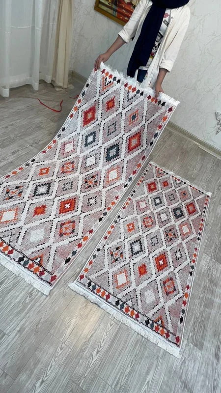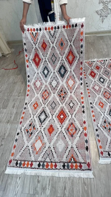 فرشینه استپ دار یک محصول جدیدی است که چند سالی است به عنوان جایگزین ارزان قیمت تر فرش تولید میشود. این محصول از یک لایه پارچه ای از جنس مخمل شانل تشکیل شده است که طرح روی این لایه چاپ می شود. لایه میانی یک لایه از نمد است و لایه زیرین یک لایه استپ دار است. به دلیل این لایه روی سرامیک حرکت خاصی نخواهد داشت. این محصول را راحت می توان به مانند فرش به قالی شویی داد. این محصول از ابعاد پادری تا ۱۲ متری تولید میشود. با توجه به سایزهای متنوع و تعداد طرح بسیار زیاد، این محصول با سفارش تولید میشود. هر سایزی که نیاز داشته باشید هم تولید میشود. حتی اگر ۱۵۴ در ۳۴۷ که دقیق هم نیست تولید میشود. برای این سایزهایی که در منوی سایزها موجود نیست، از چت سایت با ما در تماس باشید. قول ما برای زمان تولید و ارسال ۲۵ روز کاری است و هزینه ارسال طبق قانون کارگاه بر عهده مشتری است. لازم به ذکر است از هر طرح فرشینه، کاور فرش کشدار نیز قابل سفارش است و از هر طرح کاور فرش کشدار، فرشینه نیز قابل سفارش است.