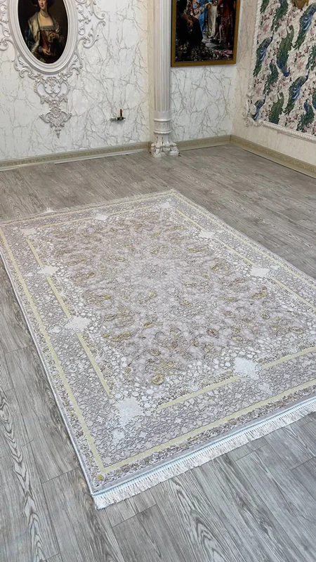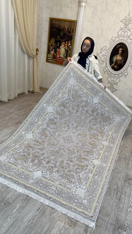 فرشینه استپ دار ۳ لایه ریشه دار (فرش لایت) کیفیت عالی طرح زیبا رنگ طوسی کد fh1820 (با فیلم)