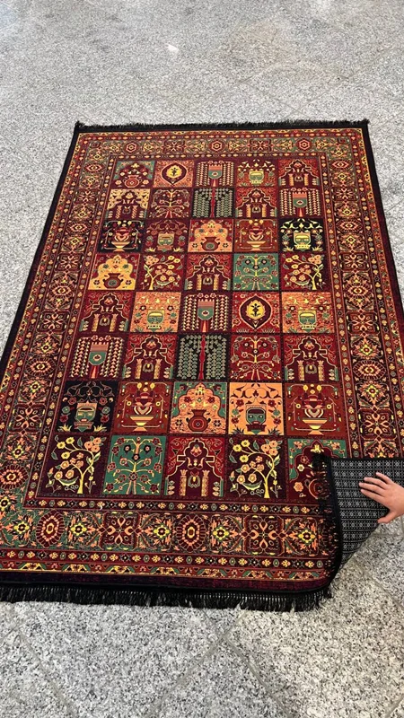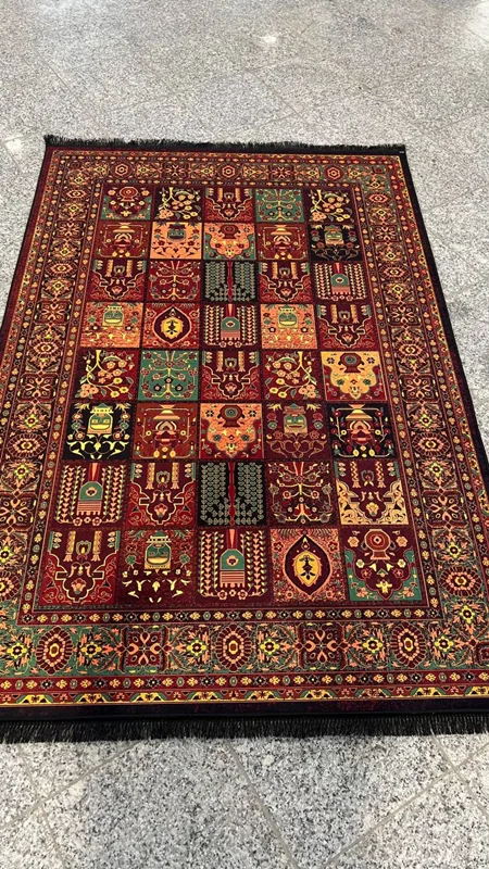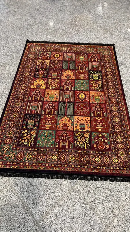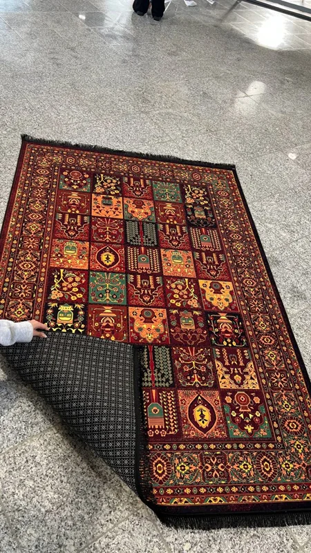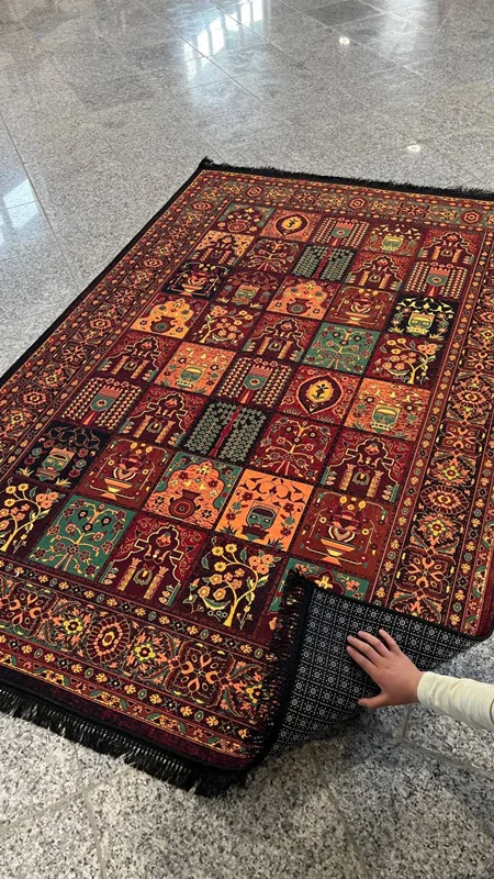 فرشینه استپ دار یک محصول جدیدی است که چند سالی است به عنوان جایگزین ارزان قیمت تر فرش تولید میشود. این محصول از یک لایه پارچه ای از جنس مخمل شانل تشکیل شده است که طرح روی این لایه چاپ می شود. لایه میانی یک لایه از نمد است و لایه زیرین یک لایه استپ دار است. به دلیل این لایه روی سرامیک حرکت خاصی نخواهد داشت. این محصول را راحت می توان به مانند فرش به قالی شویی داد. این محصول از ابعاد پادری تا ۱۲ متری تولید میشود. با توجه به سایزهای متنوع و تعداد طرح بسیار زیاد، این محصول با سفارش تولید میشود. هر سایزی که نیاز داشته باشید هم تولید میشود. حتی اگر ۱۵۴ در ۳۴۷ که دقیق هم نیست تولید میشود. برای این سایزهایی که در منوی سایزها موجود نیست، از چت سایت با ما در تماس باشید. قول ما برای زمان تولید و ارسال ۲۵ روز کاری است و هزینه ارسال طبق قانون کارگاه بر عهده مشتری است. لازم به ذکر است از هر طرح فرشینه، کاور فرش کشدار نیز قابل سفارش است و از هر طرح کاور فرش کشدار، فرشینه نیز قابل سفارش است.