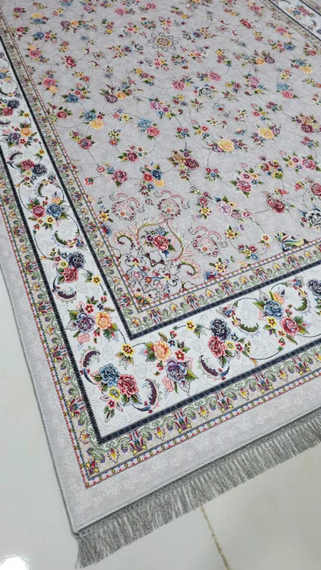 فرشینه استپ دار ۳ لایه ریشه دار (فرش لایت) کیفیت عالی طرح زیبا رنگ طوسی کد fh1820 (با فیلم)