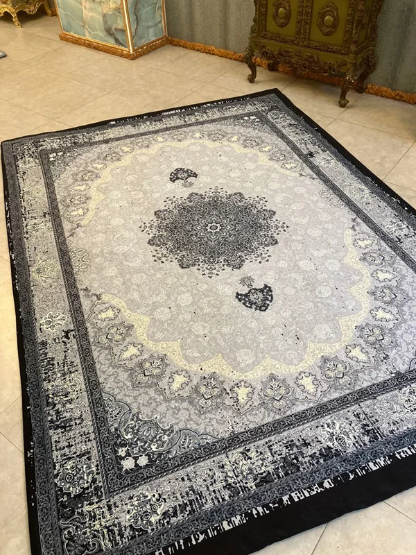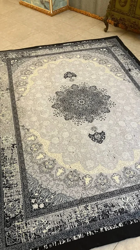 این روفرشی کشدار (کاور روفرشی) با بهترین کیفیت موجود در بازار و با بهترین پارچه دو رو مخمل شانل و با تراکم خیلی بالا و کیفیت چاپ فوق العاده (کاملا مانند عکس ژورنالی) با طرح بسیار زیبا در سایزهای 4 و 6 و 9 و 12 متری تولید می شود. در صورتی که فرش شما نسبت به اندازه های استاندارد کمی بزرگتر یا کوچکتر باشند، می توانید در قبال 100 هزار تومان بیشتر، سایزهای غیر استاندارد نیز سفارش دهید. قول ما برای مدت زمان مورد نیاز برای تولید این کاور فرش از روز ثبت سفارش، ۲۵ روز کاری می باشد، اما عموما زودتر تولید و ارسال می شود. ما برای این بدقول نشیم، قول ۲۵ روز کاری را میدهیم. کاورهای فرش به دلیل دریافت سفارش برای تولید، به صورت پرداخت کامل در موقع سفارش است و هزینه ارسال به صورت هماهنگ کشوری بر عهده مشتری به صورت پس کرایه می باشد. در صورت انتخاب سایز غیر استاندارد، در قسمت توضیحات سفارش (مستطیلی که بعد از ثبت آدرس و زیر نقشه محل سکونت قرار دارد که در حین سفارش آن را خواهید دید)، سایز دقیق فرشتان را بنویسید تا دقیقا متناسب با سایز فرشتان تولید شود. فکر نکنید فرش شما استاندارد است. اکثر فرش ها چند سانت کوچیک بزرگ اند. در تولید کاور فرش حتی یک سانت هم مهم است. پس سعی کنید در اندازه فرشتان از متر فلزی استفاده کنید. عرض که مشخص است چطور اندازه بگیرید. برای اندازه گیری طول ریشه حساب نشود ولی بافت سفید قبل از ریشه باید در اندازه گیری طول، لحاظ شود. لطفا همچنین در توضیحات سفارش ذکر کنید فرشتون چند شانه است و چه تراکم بافتی دارد. این اطلاعات گاهی برای نوع کش دوزی و میزان اضافه پارچه مورد نیاز، مورد نیاز خیاط است و عموما در لیبلی در زیر فرشتان درج شده است و میتوانید لبه فرشتون را بالا بزنید و ببینید.