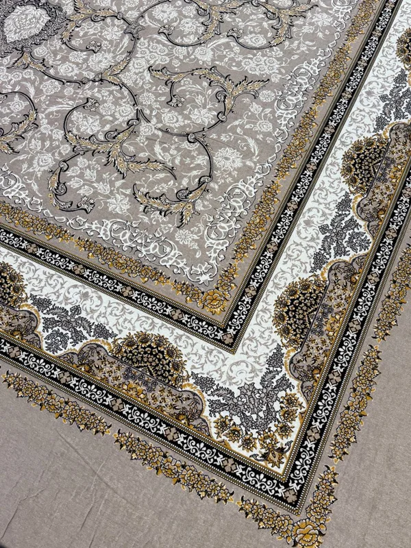 کاور فرش و روفرشی کشدار طرح افشان عالی زمینه طوسی فیلی کد 0458