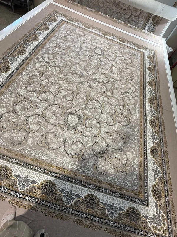 کاور فرش کشدار طرح افشان بسیار زیبا زمینه فیلی