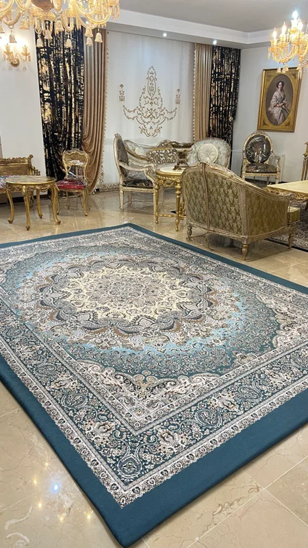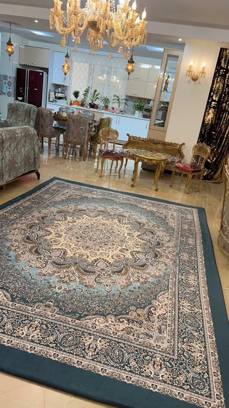 این روفرشی کشدار (کاور روفرشی) با بهترین کیفیت موجود در بازار و با بهترین پارچه دو رو مخمل شانل و با تراکم خیلی بالا و کیفیت چاپ فوق العاده (کاملا مانند عکس ژورنالی) با طرح بسیار زیبا در سایزهای 4 و 6 و 9 و 12 متری تولید می شود. در صورتی که فرش شما نسبت به اندازه های استاندارد کمی بزرگتر یا کوچکتر باشند، می توانید در قبال 100 هزار تومان بیشتر، سایزهای غیر استاندارد نیز سفارش دهید. قول ما برای مدت زمان مورد نیاز برای تولید این کاور فرش از روز ثبت سفارش، ۲۵ روز کاری می باشد، اما عموما زودتر تولید و ارسال می شود. ما برای این بدقول نشیم، قول ۲۵ روز کاری را میدهیم. کاورهای فرش به دلیل دریافت سفارش برای تولید، به صورت پرداخت کامل در موقع سفارش است و هزینه ارسال به صورت هماهنگ کشوری بر عهده مشتری به صورت پس کرایه می باشد. در صورت انتخاب سایز غیر استاندارد، در قسمت توضیحات سفارش (مستطیلی که بعد از ثبت آدرس و زیر نقشه محل سکونت قرار دارد که در حین سفارش آن را خواهید دید)، سایز دقیق فرشتان را بنویسید تا دقیقا متناسب با سایز فرشتان تولید شود. فکر نکنید فرش شما استاندارد است. اکثر فرش ها چند سانت کوچیک بزرگ اند. در تولید کاور فرش حتی یک سانت هم مهم است. پس سعی کنید در اندازه فرشتان از متر فلزی استفاده کنید. عرض که مشخص است چطور اندازه بگیرید. برای اندازه گیری طول ریشه حساب نشود ولی بافت سفید قبل از ریشه باید در اندازه گیری طول، لحاظ شود. لطفا همچنین در توضیحات سفارش ذکر کنید فرشتون چند شانه است و چه تراکم بافتی دارد. این اطلاعات گاهی برای نوع کش دوزی و میزان اضافه پارچه مورد نیاز، مورد نیاز خیاط است و عموما در لیبلی در زیر فرشتان درج شده است و میتوانید لبه فرشتون را بالا بزنید و ببینید.