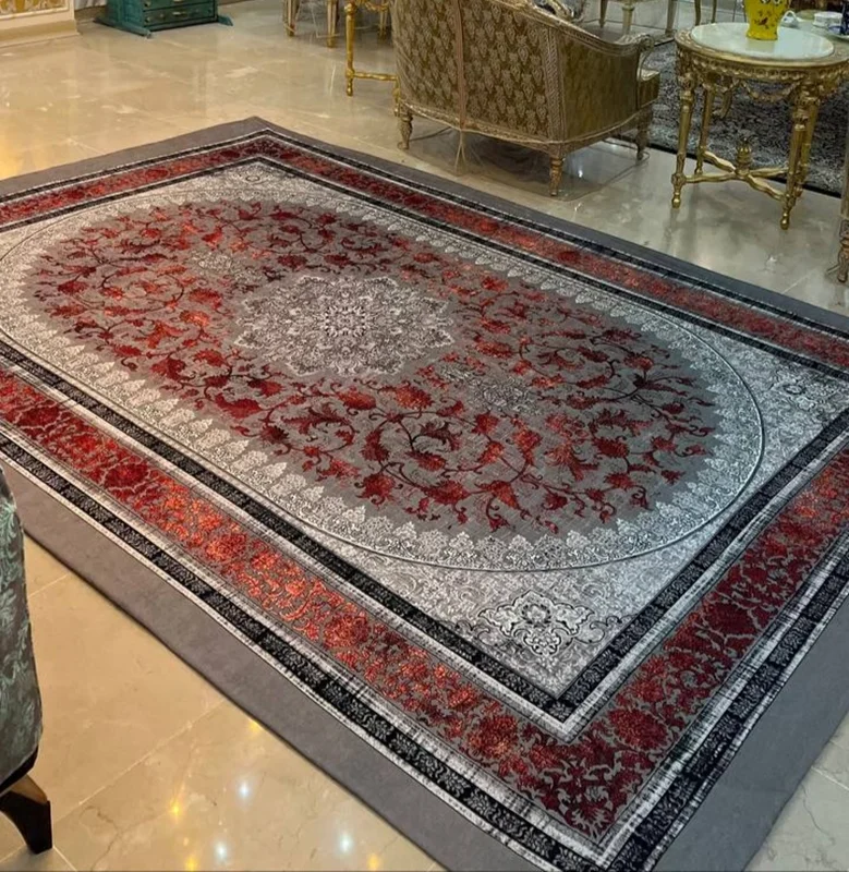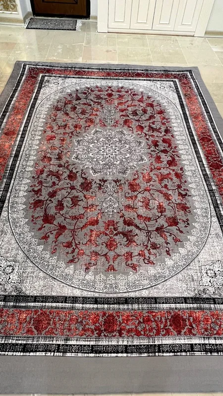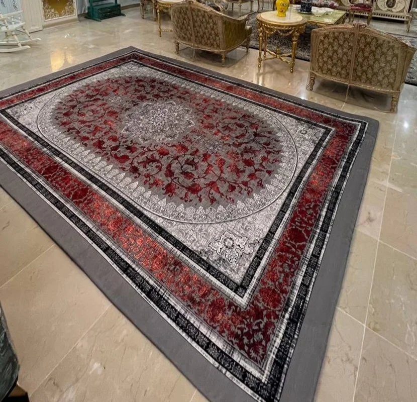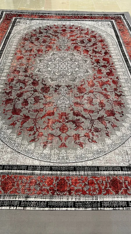 کاور فرش و روفرشی کشدار رنگ طوسی ترکیب زرشکی کد 1651 (با فیلم)