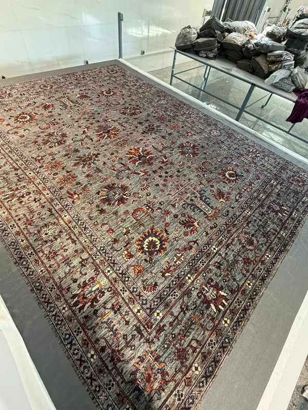 رامش مارکت مفتخر است این روفرشی کشدار (کاور روفرشی) با بهترین کیفیت موجود در بازار و با بهترین پارچه دو رو مخمل شانل و با تراکم خیلی بالا و کیفیت چاپ فوق العاده (کاملا مانند عکس ژورنالی) با طرح بسیار زیبا در سایزهای 4 و 6 و 9 و 12 متری برای شما مشتریان گرامی آماده سفارش برای تولید کرده است. در صورتی که فرش شما نسبت به اندازه های استاندارد کمی بزرگتر یا کوچکتر باشند، می توانید در قبال 100 هزار تومان بیشتر، سایزهای غیر استاندارد نیز به ما (منسوجات رامش) سفارش دهید. در ضمن هر سایز دلخواهی تا عرض ۳ متر نیز قابل سفارش است. قول ما برای مدت زمان مورد نیاز برای تولید این کاور فرش از روز ثبت سفارش، ۲۵ روز کاری می باشد، اما عموما زودتر تولید و ارسال می شود. ما برای این بدقول نشیم، قول ۲۵ روز کاری را میدهیم. کاورهای فرش به دلیل دریافت سفارش برای تولید، به صورت پرداخت کامل در موقع سفارش است و هزینه ارسال به صورت هماهنگ کشوری بر عهده مشتری به صورت پس کرایه می باشد. در صورت انتخاب سایز غیر استاندارد، در قسمت توضیحات سفارش (مستطیلی که بعد از ثبت آدرس و زیر نقشه محل سکونت قرار دارد که در حین سفارش آن را خواهید دید)، سایز دقیق فرشتان را بنویسید تا دقیقا متناسب با سایز فرشتان تولید شود. فکر نکنید فرش شما استاندارد است. اکثر فرش ها چند سانت کوچیک بزرگ اند. در تولید کاور فرش حتی یک سانت هم مهم است. پس سعی کنید در اندازه فرشتان از متر فلزی استفاده کنید. عرض که مشخص است چطور اندازه بگیرید. برای اندازه گیری طول ریشه حساب نشود ولی بافت سفید قبل از ریشه باید در اندازه گیری طول، لحاظ شود. لطفا همچنین در توضیحات سفارش ذکر کنید فرشتون چند شانه است و چه تراکم بافتی دارد. این اطلاعات گاهی برای نوع کش دوزی و میزان اضافه پارچه مورد نیاز، مورد نیاز خیاط است و عموما در لیبلی در زیر فرشتان درج شده است و میتوانید لبه فرشتون را بالا بزنید و ببینید.
