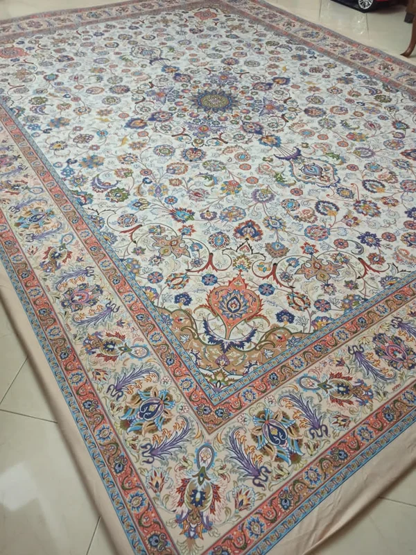 این روفرشی کشدار (کاور فرش کشدار) با بهترین کیفیت و با پارچه مخمل پورشه تراکم بالا تولید می شود. پارچه مخمل پورشه نسبت به مخمل شانل مقداری نازک تر (سبک تر) ولی خیلی لطیف تر است طوری که این لطافت موقعی که روی آن راه می روید کاملا از مخمل شانل قابل تشخیص است. این کاور فرش (روفرشی کشدار) با این طرح بسیار زیبا و جذاب در سایزهای ۳ ، ۴ ، ۶ ، ۹ ، ۱۲ متری تولید می شود. از این طرح سایزهای دیگر مانند ۳×۵ و ۳×۶ و ۴×۵ و ۴×۶ و سایز های بزرگ دیگر نیز تولید می شود. این طرح همچنین در سایز های کناره مانند ۱×۱.۵ و ۱×۲ و همچنین طرح دایره ای (گرد) با قطرهای مختلف نیز قابل سفارش دادن است. تا عرض ۳۲۰ سانت از این طرح قابل چاپ به صورت یکپارچه امکان پذیر است. ولی برای عرض های بیشتر از ۳۲۰ سانت، یک دوخت در پارچه ایجاد میشود. مثلا در سایز ۲۴ متری با عرض ۴ یک دوخت وسط پارچه ایجاد که خیلی هم مشخص و پیدا نیست. در صورتی که فرش شما نسبت به اندازه های استاندارد کمی بزرگتر یا کوچکتر باشند، می توانید در قبال ۴۰ هزار تومان به ازای هر ده سانت کاور فرش منطبق با سایز فرشتون سفارش دهید. مدت زمان مورد نیاز برای تولید این کاور فرش از روز ثبت سفارش، ۱۵ روز کاری می باشد. کاورهای فرش به دلیل دریافت سفارش برای تولید، به صورت پرداخت کامل در موقع سفارش است و هزینه ارسال بر عهده مشتری به صورت پس کرایه می باشد. در صورت انتخاب سایز غیر استاندارد، در قسمت توضیحات سفارش، سایز دقیق فرشتان را بنویسید تا دقیقا متناسب با سایز فرشتان تولید شود. از این طرح کوسن و روبالشی. و پرده (با پارچه پورشه) قابل سفارش و تولید است.