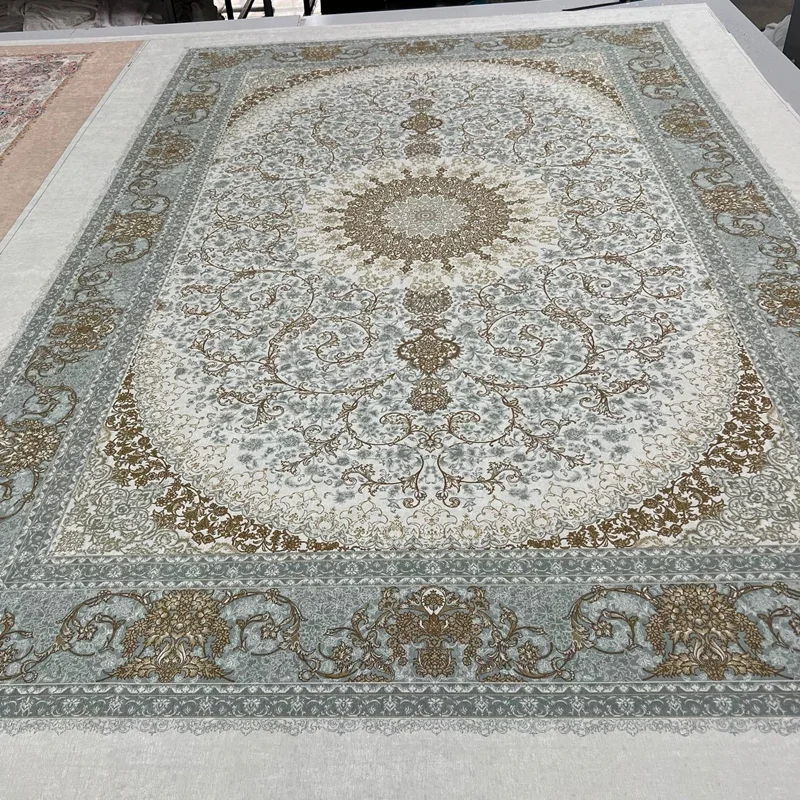 این روفرشی کشدار (کاور فرش) با بهترین کیفیت موجود در بازار و با پارچه مخمل شانل با تراکم خیلی بالا و کیفیت چاپ فوق العاده با طرح بسیار زیبا در سایزهای 4 و 6 و 9 و 12 متری تولید می شود. سایزهای کناره با ابعاد ۱×۱.۵ متر، ۱×۲ متر، ۱×۳ متر و ۱×۴ متر نیز برای این طرح قابل تولید است. لازم به ذکر است که ابعاد بزرگتر از ۱۲ متری نیز برای این طرح قابل تولید است. منتها وقتی عرض از یک مقداری افزایش می یابد، یک دوخت بین کار ایجاد می شود ولی این دوخت، یکپارچگی طرح را بر هم نمی زند و طرح پازلی روی هم می افتد و خود دوخت نیز خیلی پیدا نیست. این کاور فرش دارای کش های دور تا دوری و دو کش کمری است و به همین دلیل روی فرش لیز نمیخورد و جاروکشی آن آسان است. قابل شستشو در لباسشویی (دمای کمتر از ۳۰ درجه برای سلامت کش ها) با تضمین ثبات زنگ و مقاومت در برابر شستشو است. در صورتی که فرش شما نسبت به اندازه های استاندارد کمی بزرگتر یا کوچکتر باشند، می توانید در قبال 100 هزار تومان بیشتر، سایزهای غیر استاندارد نیز سفارش دهید. مدت زمان مورد نیاز برای تولید این کاور فرش از روز ثبت سفارش، ۲۰ روز کاری می باشد. کاورهای فرش به دلیل دریافت سفارش برای تولید، به صورت پرداخت کامل در موقع سفارش است و هزینه ارسال بر عهده مشتری به صورت پس کرایه می باشد. در صورت انتخاب سایز غیر استاندارد، در قسمت توضیحات سفارش، سایز دقیق فرشتان را بنویسید تا دقیقا متناسب با سایز فرشتان تولید شود. توجه شود که برای اندازه گیری سایز باید طول و عرض را با سانتیمتر (ترجیحا متر فلزی) دقیق اندازه بزنید. ریشه را چون تا میخورد نباید حساب کنید ولی بافت سفید قبل از ریشه در اندازه گیری باید در نظر گرفته شود. در نظر داشته باشید متوسط از بین هر ده تا فرش، هشت فرش غیر استاندارد اند. پس حتما سایز دقیق فرشتان را اندازه بزنید و فکر نکنید که فرش شما استاندارد است.