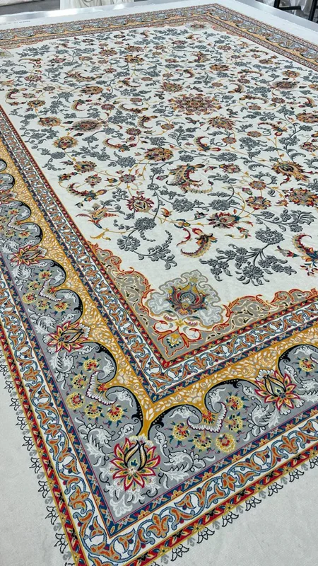 این روفرشی کشدار (کاور فرش) با بهترین کیفیت موجود در بازار و با پارچه مخمل شانل با تراکم خیلی بالا و کیفیت چاپ فوق العاده با طرح بسیار زیبا در سایزهای 4 و 6 و 9 و 12 متری تولید می شود. سایزهای کناره با ابعاد ۱×۱.۵ متر، ۱×۲ متر، ۱×۳ متر و ۱×۴ متر نیز برای این طرح قابل تولید است. لازم به ذکر است که ابعاد بزرگتر از ۱۲ متری نیز برای این طرح قابل تولید است. منتها وقتی عرض از یک مقداری افزایش می یابد، یک دوخت بین کار ایجاد می شود ولی این دوخت، یکپارچگی طرح را بر هم نمی زند و طرح پازلی روی هم می افتد و خود دوخت نیز خیلی پیدا نیست. این کاور فرش دارای کش های دور تا دوری و دو کش کمری است و به همین دلیل روی فرش لیز نمیخورد و جاروکشی آن آسان است. قابل شستشو در لباسشویی (دمای کمتر از ۳۰ درجه برای سلامت کش ها) با تضمین ثبات زنگ و مقاومت در برابر شستشو است. در صورتی که فرش شما نسبت به اندازه های استاندارد کمی بزرگتر یا کوچکتر باشند، می توانید در قبال 100 هزار تومان بیشتر، سایزهای غیر استاندارد نیز سفارش دهید. مدت زمان مورد نیاز برای تولید این کاور فرش از روز ثبت سفارش، ۲۰ روز کاری می باشد. کاورهای فرش به دلیل دریافت سفارش برای تولید، به صورت پرداخت کامل در موقع سفارش است و هزینه ارسال بر عهده مشتری به صورت پس کرایه می باشد. در صورت انتخاب سایز غیر استاندارد، در قسمت توضیحات سفارش، سایز دقیق فرشتان را بنویسید تا دقیقا متناسب با سایز فرشتان تولید شود. توجه شود که برای اندازه گیری سایز باید طول و عرض را با سانتیمتر دقیق اندازه بزنید. ریشه را چون تا میخورد نباید حساب کنید ولی بافت سفید قبل از ریشه در اندازه گیری باید در نظر گرفته شود. در نظر داشته باشید متوسط از بین هر ده تا فرش، هشت فرش غیر استاندارد اند. پس حتما سایز دقیق فرشتان را اندازه بزنید.