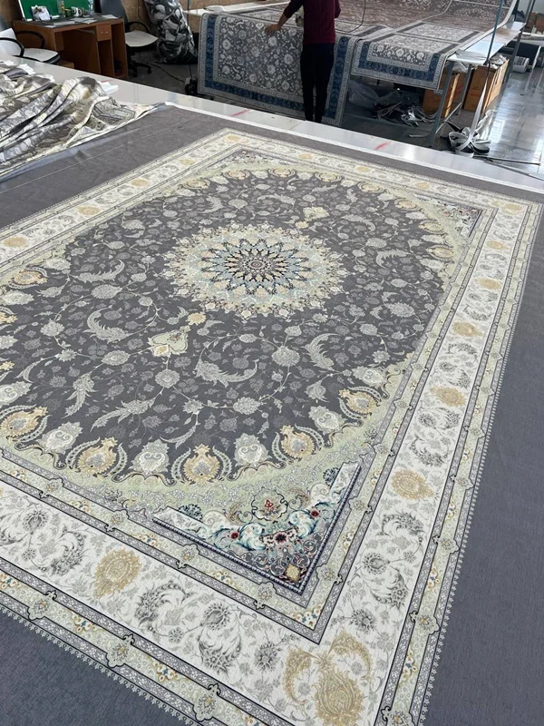این روفرشی کشدار (کاور روفرشی) با بهترین کیفیت موجود در بازار و با بهترین پارچه دو رو مخمل شانل و با تراکم خیلی بالا و کیفیت چاپ خیلی خوب با طرح بسیار زیبا در سایزهای 4 و 6 و 9 و 12 متری تولید می شود و در منسوجات رامش (رامش مارکت) ارائه می شود. از این طرح سایزهای ۱×۱.۵، ۱×۲، ۱×۳ و ۱×۴ نیز تولید می شود. سایز ۳×۵ و ۳×۶ و ۳×۸ و هر سایز دلخواه دیگری از این طرح نیز قابل سفارش است. کلا سفارش سایزهای خاص با عرض کمتر از ۳ متر و ۲۰ سانت، از این طرح پذیرفته می شود. برای قیمت در قسمت چت سایت پیام دهید. در صورتی که فرش شما نسبت به اندازه های استاندارد بزرگتر یا کوچکتر باشند، می توانید در قبال 100 هزار تومان بیشتر، سایزهای غیر استاندارد نیز سفارش دهید. این کاور فرش دارای کش های دور تا دور و کش های کمری است (۳ تا کش کمری در ۱۲ متری و ۲ تا در سایزهای کوچکتر). نوع دوخت بگونه ای است که نیاز به کش های چهار گوشه را ندارد. اگرچه ما توصیه نمی کنیم ولی اگر مشتری بخواهد با مبلغ ۲۰ تومان این کش های لچکی نیز اضافه می شود. مدت زمان مورد نیاز برای تولید این کاور فرش از روز ثبت سفارش، ۱۸ تا ۲۲ روز کاری می باشد. البته ممکن است زودتر تولید و ارسال شود. ولی ما برای اینکه بدقول نشیم ۱۸ تا ۲۲ روز کاری را قول میدهیم. کاورهای فرش به دلیل دریافت سفارش برای تولید، به صورت پرداخت کامل در موقع سفارش است و هزینه ارسال بر عهده مشتری به صورت پس کرایه می باشد. در صورت انتخاب سایز غیر استاندارد، در قسمت توضیحات سفارش، سایز دقیق فرشتان را بنویسید تا دقیقا متناسب با سایز فرشتان تولید شود. توجه شود اکثر فرش ها چند سانت بزرگ و کوچک اند و باید کاور فرش کشدار طبق سایز دقیق فرشتان تولید شود. برای اندازه گیری طول دقیق فرشتان، ریشه را در نظر نگیرید؛ ولی بافت سفید قبل از ریشه را در اندازه گیری در نظر بگیرید. سعی کنید از متر فلزی استفاده کنید. حتی یک سانت هم مهم است. لطفا فکر نکنید که فرشتون استاندارده. حتما حتما باید سایز بزنید. از همین طرح علاوه بر کوسن، فرشینه استپ دار سه لایه و چهار لایه در ابعاد مختلف و در اشکال مستطیل ، دایره و بیضی نیز می توانید سفارش دهید. فرشینه برای پادری ، جلو سینکی و برای روی سرامیک بسیار مناسب است. فرشینه یک پارچه مخمل شبیه جنس کاور فرش است، با این تفاوت که به یک لایه استپ دار متصل میشود.