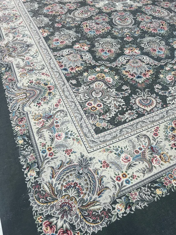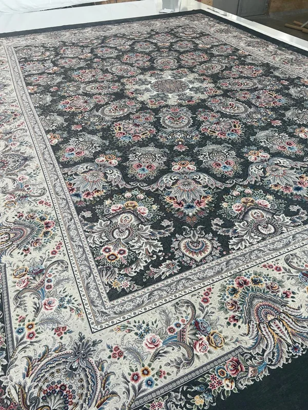این روفرشی کشدار (کاور روفرشی) با بهترین کیفیت موجود در بازار و با بهترین پارچه دو رو مخمل شانل و با تراکم خیلی بالا و کیفیت چاپ خیلی خوب با طرح بسیار زیبا در سایزهای 4 و 6 و 9 و 12 متری تولید می شود و در منسوجات رامش (رامش مارکت) ارائه می شود. از این طرح سایزهای ۱×۱.۵، ۱×۲، ۱×۳ و ۱×۴ نیز تولید می شود. سایز ۳×۵ و ۳×۶ و ۳×۸ و هر سایز دلخواه دیگری از این طرح نیز قابل سفارش است. کلا سفارش سایزهای خاص با عرض کمتر از ۳ متر و ۲۰ سانت، از این طرح پذیرفته می شود. برای قیمت در قسمت چت سایت پیام دهید. در صورتی که فرش شما نسبت به اندازه های استاندارد بزرگتر یا کوچکتر باشند، می توانید در قبال 100 هزار تومان بیشتر، سایزهای غیر استاندارد نیز سفارش دهید. این کاور فرش دارای کش های دور تا دور و کش های کمری است (۳ تا کش کمری در ۱۲ متری و ۲ تا در سایزهای کوچکتر). نوع دوخت بگونه ای است که نیاز به کش های چهار گوشه را ندارد. اگرچه ما توصیه نمی کنیم ولی اگر مشتری بخواهد با مبلغ ۲۰ تومان این کش های لچکی نیز اضافه می شود. مدت زمان مورد نیاز برای تولید این کاور فرش از روز ثبت سفارش، ۱۸ تا ۲۲ روز کاری می باشد. البته ممکن است زودتر تولید و ارسال شود. ولی ما برای اینکه بدقول نشیم ۱۸ تا ۲۲ روز کاری را قول میدهیم. کاورهای فرش به دلیل دریافت سفارش برای تولید، به صورت پرداخت کامل در موقع سفارش است و هزینه ارسال بر عهده مشتری به صورت پس کرایه می باشد. در صورت انتخاب سایز غیر استاندارد، در قسمت توضیحات سفارش، سایز دقیق فرشتان را بنویسید تا دقیقا متناسب با سایز فرشتان تولید شود. توجه شود اکثر فرش ها چند سانت بزرگ و کوچک اند و باید کاور فرش کشدار طبق سایز دقیق فرشتان تولید شود. برای اندازه گیری طول دقیق فرشتان، ریشه را در نظر نگیرید؛ ولی بافت سفید قبل از ریشه را در اندازه گیری در نظر بگیرید. سعی کنید از متر فلزی استفاده کنید. حتی یک سانت هم مهم است. لطفا فکر نکنید که فرشتون استاندارده. حتما حتما باید سایز بزنید. از همین طرح علاوه بر کوسن، فرشینه استپ دار سه لایه و چهار لایه در ابعاد مختلف و در اشکال مستطیل ، دایره و بیضی نیز می توانید سفارش دهید. فرشینه برای پادری ، جلو سینکی و برای روی سرامیک بسیار مناسب است. فرشینه یک پارچه مخمل شبیه جنس کاور فرش است، با این تفاوت که به یک لایه استپ دار متصل میشود.