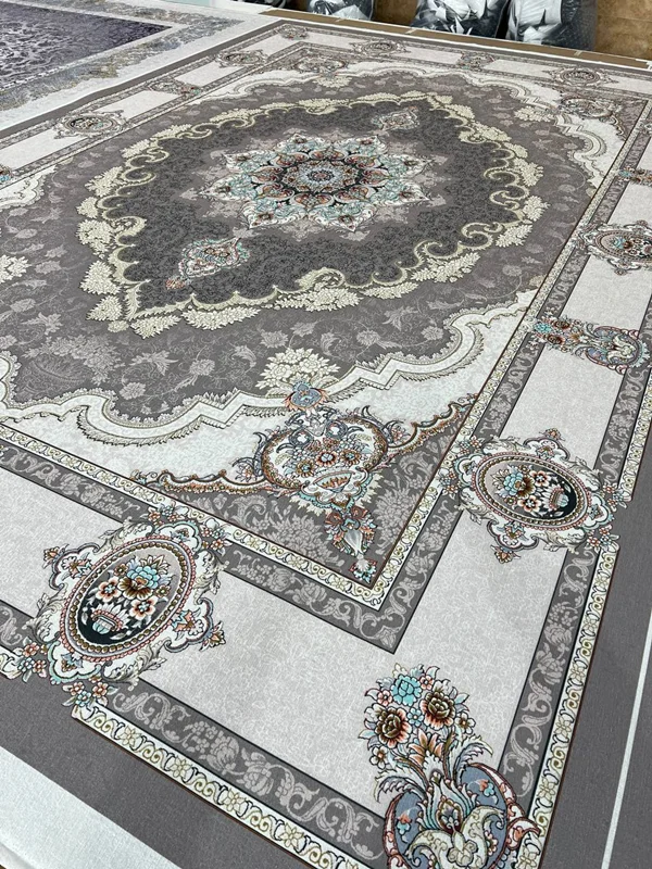 این روفرشی کشدار (کاور روفرشی) با بهترین کیفیت موجود در بازار و با بهترین پارچه دو رو مخمل شانل و با تراکم خیلی بالا و کیفیت چاپ خیلی خوب با طرح بسیار زیبا در سایزهای 4 و 6 و 9 و 12 متری تولید می شود و در منسوجات رامش (رامش مارکت) ارائه می شود. از این طرح سایزهای ۱×۱.۵، ۱×۲، ۱×۳ و ۱×۴ نیز تولید می شود. سایز ۳×۵ و ۳×۶ و ۳×۸ و هر سایز دلخواه دیگری از این طرح نیز قابل سفارش است. کلا سفارش سایزهای خاص با عرض کمتر از ۳ متر و ۲۰ سانت، از این طرح پذیرفته می شود. برای قیمت در قسمت چت سایت پیام دهید. در صورتی که فرش شما نسبت به اندازه های استاندارد بزرگتر یا کوچکتر باشند، می توانید در قبال 100 هزار تومان بیشتر، سایزهای غیر استاندارد نیز سفارش دهید. این کاور فرش دارای کش های دور تا دور و کش های کمری است (۳ تا کش کمری در ۱۲ متری و ۲ تا در سایزهای کوچکتر). نوع دوخت بگونه ای است که نیاز به کش های چهار گوشه را ندارد. اگرچه ما توصیه نمی کنیم ولی اگر مشتری بخواهد با مبلغ ۲۰ تومان این کش های لچکی نیز اضافه می شود. مدت زمان مورد نیاز برای تولید این کاور فرش از روز ثبت سفارش، ۱۸ تا ۲۲ روز کاری می باشد. البته ممکن است زودتر تولید و ارسال شود. ولی ما برای اینکه بدقول نشیم ۱۸ تا ۲۲ روز کاری را قول میدهیم. کاورهای فرش به دلیل دریافت سفارش برای تولید، به صورت پرداخت کامل در موقع سفارش است و هزینه ارسال بر عهده مشتری به صورت پس کرایه می باشد. در صورت انتخاب سایز غیر استاندارد، در قسمت توضیحات سفارش، سایز دقیق فرشتان را بنویسید تا دقیقا متناسب با سایز فرشتان تولید شود. توجه شود اکثر فرش ها چند سانت بزرگ و کوچک اند و باید کاور فرش کشدار طبق سایز دقیق فرشتان تولید شود. برای اندازه گیری طول دقیق فرشتان، ریشه را در نظر نگیرید؛ ولی بافت سفید قبل از ریشه را در اندازه گیری در نظر بگیرید. سعی کنید از متر فلزی استفاده کنید. حتی یک سانت هم مهم است. لطفا فکر نکنید که فرشتون استاندارده. حتما حتما باید سایز بزنید. از همین طرح علاوه بر کوسن، فرشینه استپ دار سه لایه و چهار لایه در ابعاد مختلف و در اشکال مستطیل ، دایره و بیضی نیز می توانید سفارش دهید. فرشینه برای پادری ، جلو سینکی و برای روی سرامیک بسیار مناسب است. فرشینه یک پارچه مخمل شبیه جنس کاور فرش است، با این تفاوت که به یک لایه استپ دار متصل میشود.