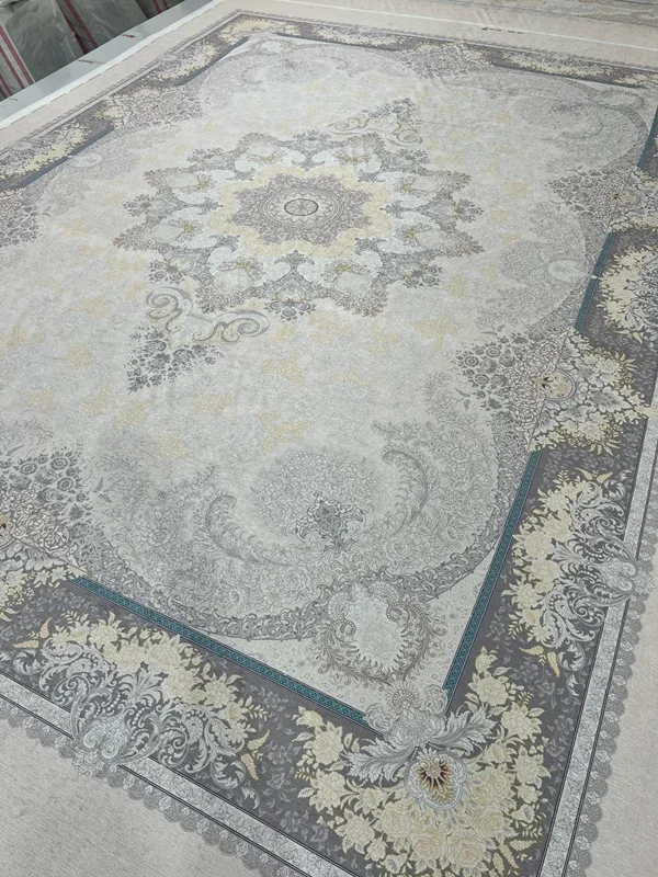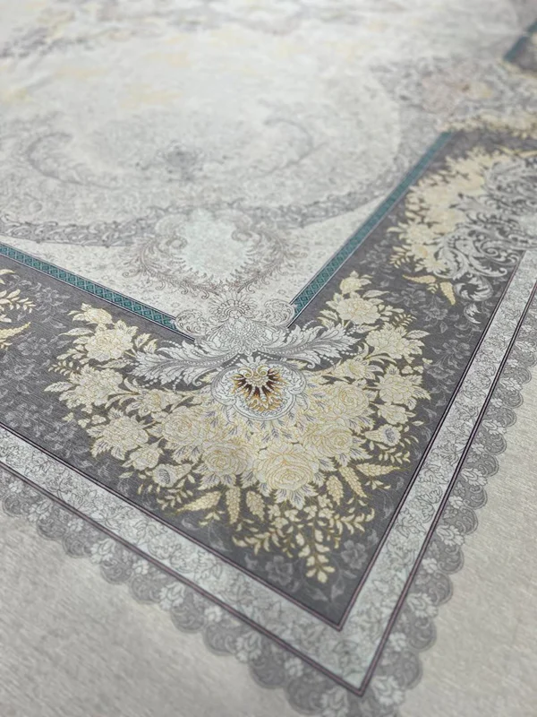 این روفرشی کشدار (کاور روفرشی) با بهترین کیفیت موجود در بازار و با بهترین پارچه دو رو مخمل شانل و با تراکم خیلی بالا و کیفیت چاپ خیلی خوب با طرح بسیار زیبا در سایزهای 4 و 6 و 9 و 12 متری تولید می شود و در منسوجات رامش (رامش مارکت) ارائه می شود. از این طرح سایزهای ۱×۱.۵، ۱×۲، ۱×۳ و ۱×۴ نیز تولید می شود. سایز ۳×۵ و ۳×۶ و ۳×۸ و هر سایز دلخواه دیگری از این طرح نیز قابل سفارش است. کلا سفارش سایزهای خاص با عرض کمتر از ۳ متر و ۲۰ سانت، از این طرح پذیرفته می شود. برای قیمت در قسمت چت سایت پیام دهید. در صورتی که فرش شما نسبت به اندازه های استاندارد بزرگتر یا کوچکتر باشند، می توانید در قبال 100 هزار تومان بیشتر، سایزهای غیر استاندارد نیز سفارش دهید. این کاور فرش دارای کش های دور تا دور و کش های کمری است (۳ تا کش کمری در ۱۲ متری و ۲ تا در سایزهای کوچکتر). نوع دوخت بگونه ای است که نیاز به کش های چهار گوشه را ندارد. اگرچه ما توصیه نمی کنیم ولی اگر مشتری بخواهد با مبلغ ۲۰ تومان این کش های لچکی نیز اضافه می شود. مدت زمان مورد نیاز برای تولید این کاور فرش از روز ثبت سفارش، ۱۸ تا ۲۲ روز کاری می باشد. البته ممکن است زودتر تولید و ارسال شود. ولی ما برای اینکه بدقول نشیم ۱۸ تا ۲۲ روز کاری را قول میدهیم. کاورهای فرش به دلیل دریافت سفارش برای تولید، به صورت پرداخت کامل در موقع سفارش است و هزینه ارسال بر عهده مشتری به صورت پس کرایه می باشد. در صورت انتخاب سایز غیر استاندارد، در قسمت توضیحات سفارش، سایز دقیق فرشتان را بنویسید تا دقیقا متناسب با سایز فرشتان تولید شود. توجه شود اکثر فرش ها چند سانت بزرگ و کوچک اند و باید کاور فرش کشدار طبق سایز دقیق فرشتان تولید شود. برای اندازه گیری طول دقیق فرشتان، ریشه را در نظر نگیرید؛ ولی بافت سفید قبل از ریشه را در اندازه گیری در نظر بگیرید. سعی کنید از متر فلزی استفاده کنید. حتی یک سانت هم مهم است. لطفا فکر نکنید که فرشتون استاندارده. حتما حتما باید سایز بزنید. از همین طرح علاوه بر کوسن، فرشینه استپ دار سه لایه و چهار لایه در ابعاد مختلف و در اشکال مستطیل ، دایره و بیضی نیز می توانید سفارش دهید. فرشینه برای پادری ، جلو سینکی و برای روی سرامیک بسیار مناسب است. فرشینه یک پارچه مخمل شبیه جنس کاور فرش است، با این تفاوت که به یک لایه استپ دار متصل میشود.