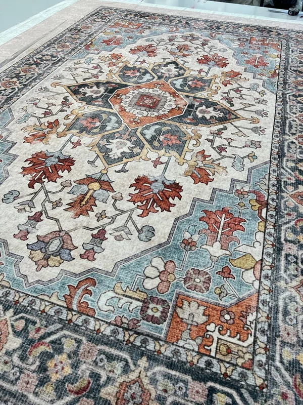 این روفرشی کشدار (کاور روفرشی) با بهترین کیفیت موجود در بازار و با بهترین پارچه دو رو مخمل شانل و با تراکم خیلی بالا و کیفیت چاپ خیلی خوب با طرح بسیار زیبا در سایزهای 4 و 6 و 9 و 12 متری تولید می شود و در منسوجات رامش (رامش مارکت) ارائه می شود. از این طرح سایزهای ۱×۱.۵، ۱×۲، ۱×۳ و ۱×۴ نیز تولید می شود. سایز ۳×۵ و ۳×۶ و ۳×۸ و هر سایز دلخواه دیگری از این طرح نیز قابل سفارش است. کلا سفارش سایزهای خاص با عرض کمتر از ۳ متر و ۲۰ سانت، از این طرح پذیرفته می شود. برای قیمت در قسمت چت سایت پیام دهید. در صورتی که فرش شما نسبت به اندازه های استاندارد بزرگتر یا کوچکتر باشند، می توانید در قبال 100 هزار تومان بیشتر، سایزهای غیر استاندارد نیز سفارش دهید. این کاور فرش دارای کش های دور تا دور و کش های کمری است (۳ تا کش کمری در ۱۲ متری و ۲ تا در سایزهای کوچکتر). نوع دوخت بگونه ای است که نیاز به کش های چهار گوشه را ندارد. اگرچه ما توصیه نمی کنیم ولی اگر مشتری بخواهد با مبلغ ۲۰ تومان این کش های لچکی نیز اضافه می شود. مدت زمان مورد نیاز برای تولید این کاور فرش از روز ثبت سفارش، ۱۸ تا ۲۲ روز کاری می باشد. البته ممکن است زودتر تولید و ارسال شود. ولی ما برای اینکه بدقول نشیم ۱۸ تا ۲۲ روز کاری را قول میدهیم. کاورهای فرش به دلیل دریافت سفارش برای تولید، به صورت پرداخت کامل در موقع سفارش است و هزینه ارسال بر عهده مشتری به صورت پس کرایه می باشد. در صورت انتخاب سایز غیر استاندارد، در قسمت توضیحات سفارش، سایز دقیق فرشتان را بنویسید تا دقیقا متناسب با سایز فرشتان تولید شود. توجه شود اکثر فرش ها چند سانت بزرگ و کوچک اند و باید کاور فرش کشدار طبق سایز دقیق فرشتان تولید شود. برای اندازه گیری طول دقیق فرشتان، ریشه را در نظر نگیرید؛ ولی بافت سفید قبل از ریشه را در اندازه گیری در نظر بگیرید. سعی کنید از متر فلزی استفاده کنید. حتی یک سانت هم مهم است. لطفا فکر نکنید که فرشتون استاندارده. حتما حتما باید سایز بزنید. از همین طرح علاوه بر کوسن، فرشینه استپ دار سه لایه و چهار لایه در ابعاد مختلف و در اشکال مستطیل ، دایره و بیضی نیز می توانید سفارش دهید. فرشینه برای پادری ، جلو سینکی و برای روی سرامیک بسیار مناسب است. فرشینه یک پارچه مخمل شبیه جنس کاور فرش است، با این تفاوت که به یک لایه استپ دار متصل میشود.