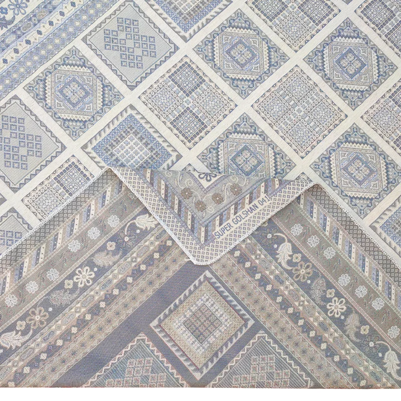 یک زیر سفره (روفرشی نسبتا سبک) از جنس مخمل شانل با یک طرح خاص و زیبا. طرح خشتی عالی. طرح بافت شده است (چاپ به هیچ وجه نیست). در تصاویر عکس رو و پشت کار گذاشته شده است. عملا روفرشی (زیرسفره) 2 رو است. و هر دو رو قابل استفاده است.