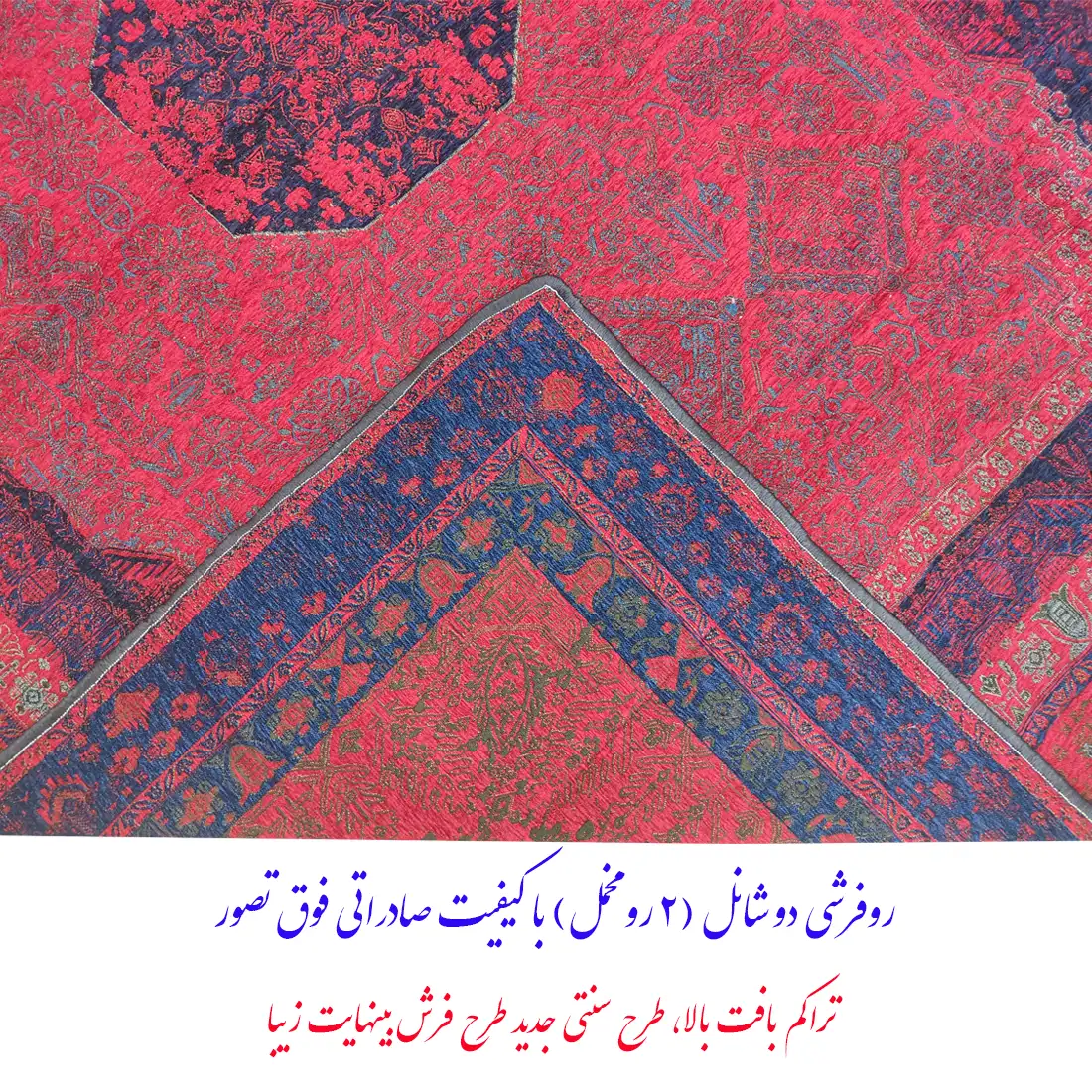روفرشی دو شانل گلباف یزد 2 رو مدل سنتی طرح فرش 3 کد 320gs