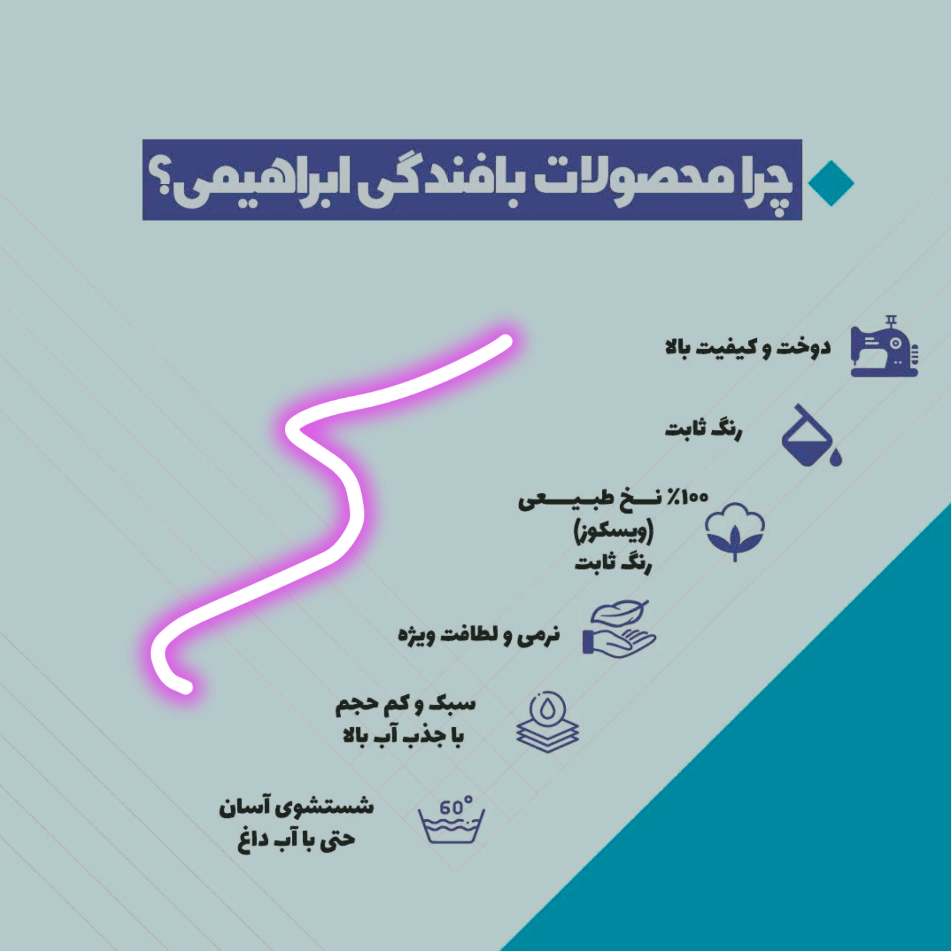 3. سرویس حوله 3 تکه صادراتی ابراهیمی یزد با برند تجاری لنوکو نیز اخیرا تولید شده و دارای تن پوش و استخری و حوله دستی است. تن پوش این سرویس در دو سایز لارج و ایکس لارج تولید می شود.